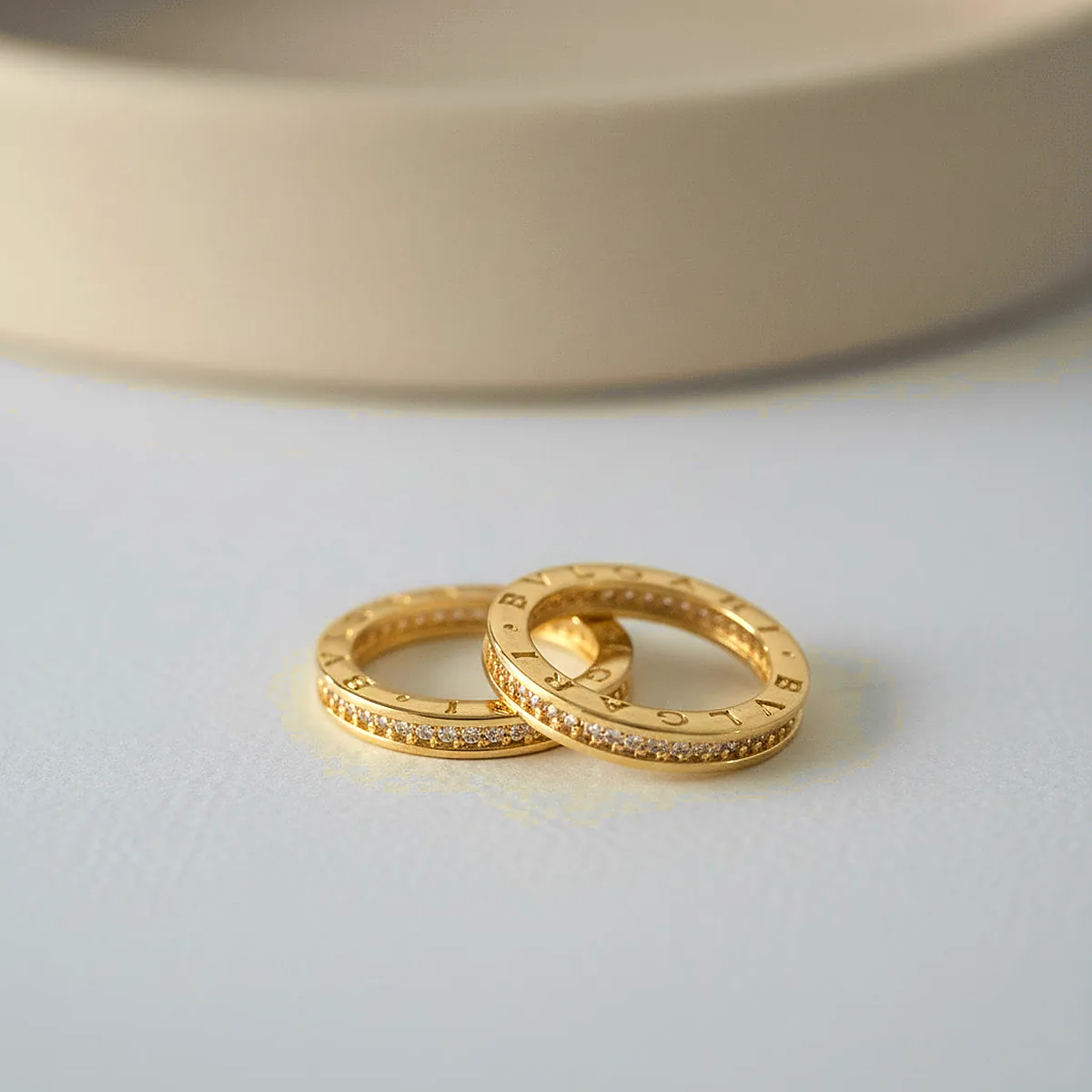 Eleva tu estilo con los anillos Bulgari en tono oro, creados para destacar por su elegancia y sofisticación. Estos anillos, adornados con deslumbrantes circones, son la expresión perfecta de la artesanía y el diseño de alta calidad que caracteriza a Luxor SM Joyería