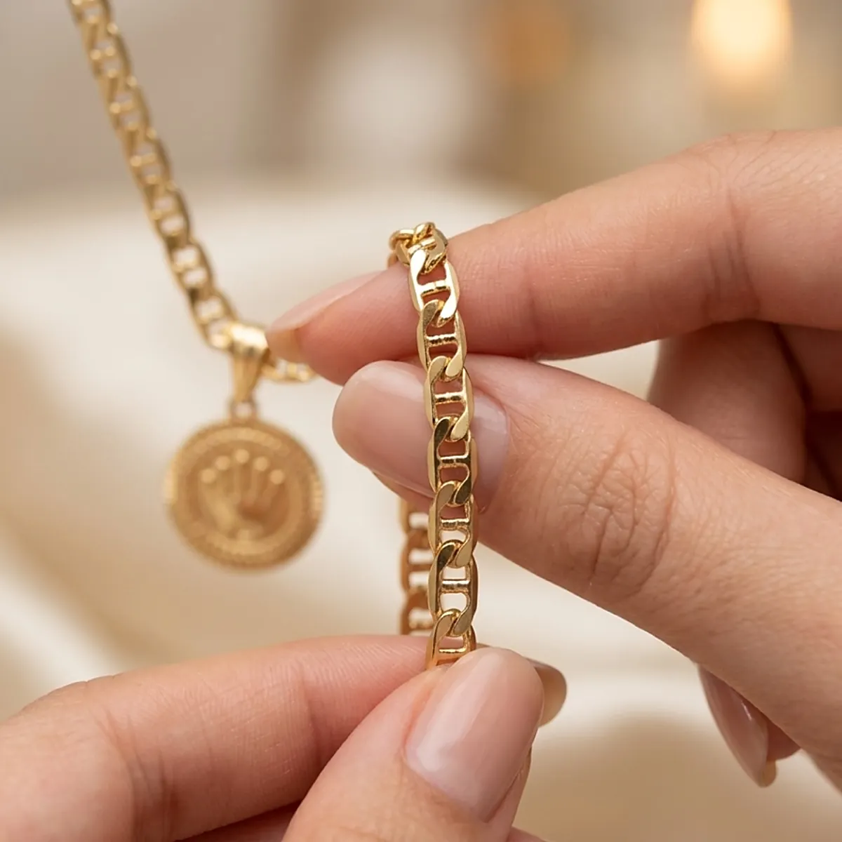 La Cadena Escalera Plana con Dije Rolex es ideal tanto para hombres como para mujeres y se adapta perfectamente a cualquier ocasión. Úsala como una pieza de declaración o combínala con otros accesorios para lograr un estilo personalizado y moderno.