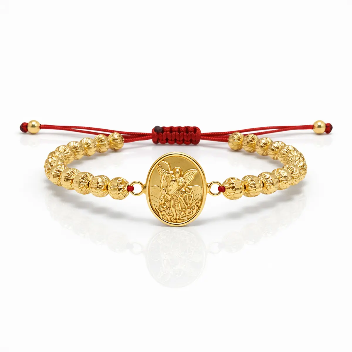 La pulsera San Miguel Arcángel en oro laminado con hilo rojo no es solo una joya, es tu compañera de protección y buena energía. Diseñada con materiales de alta calidad, combina lo místico con lo moderno para quienes valoran la elegancia con un toque espiritual.